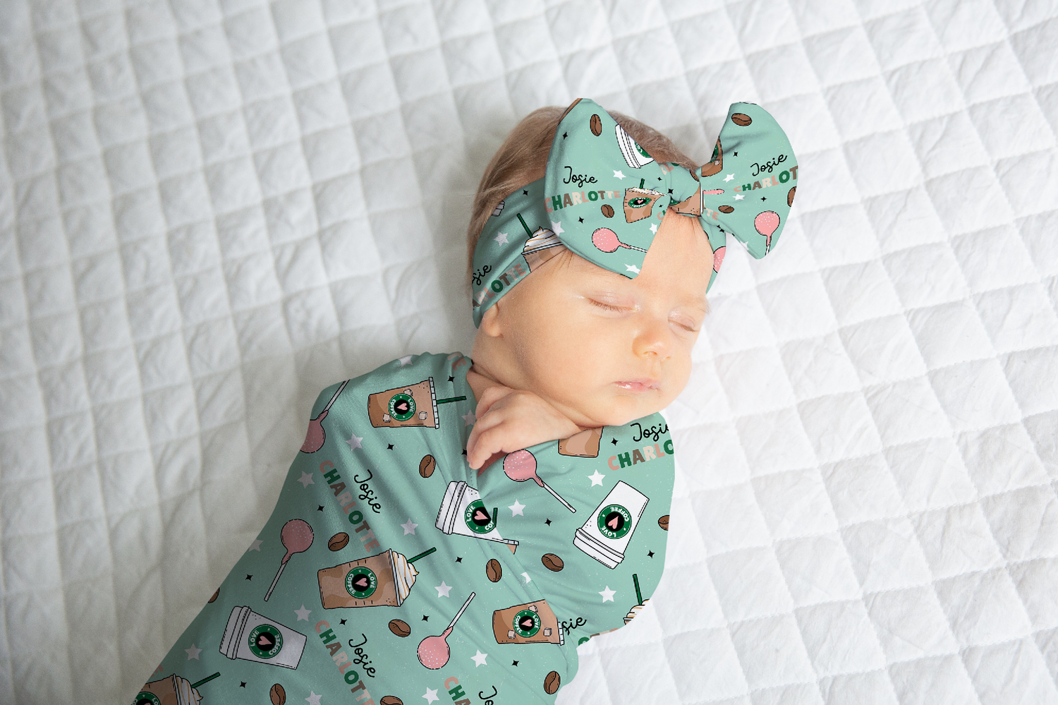 Solid Color Doodle Font Personalized Name Knotted Newborn Hat & Bow Headband