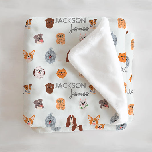 Dog Faces Personalized Baby Name Nursing Pillow Cover