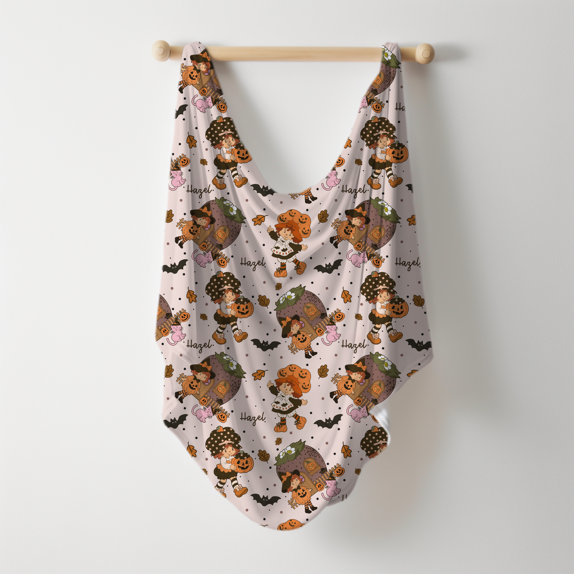Autumn Stroll Halloween Personalized Name Swaddle Blanket