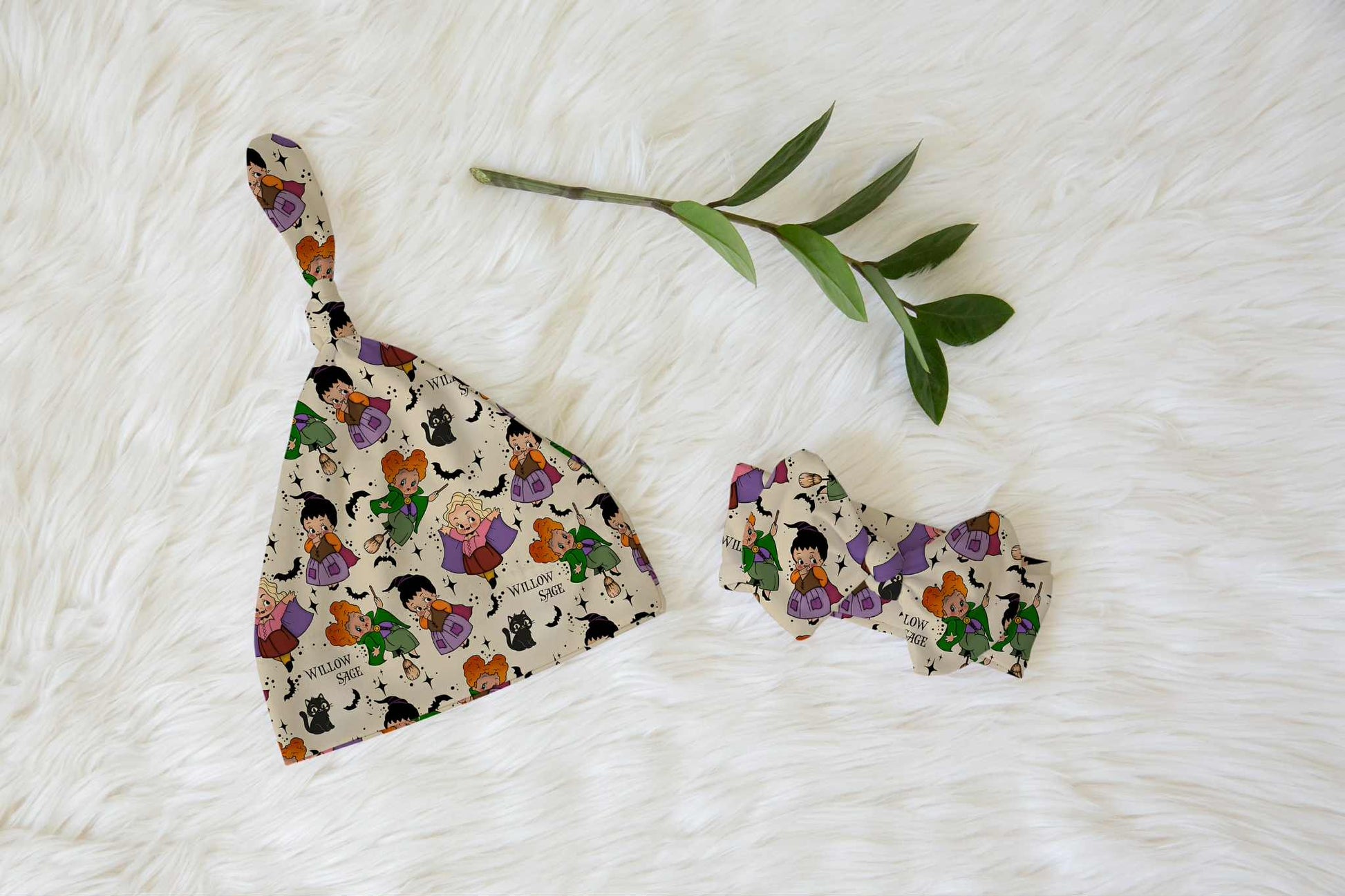 Little Witches Halloween Personalized Knotted Newborn Hat & Bow Headband