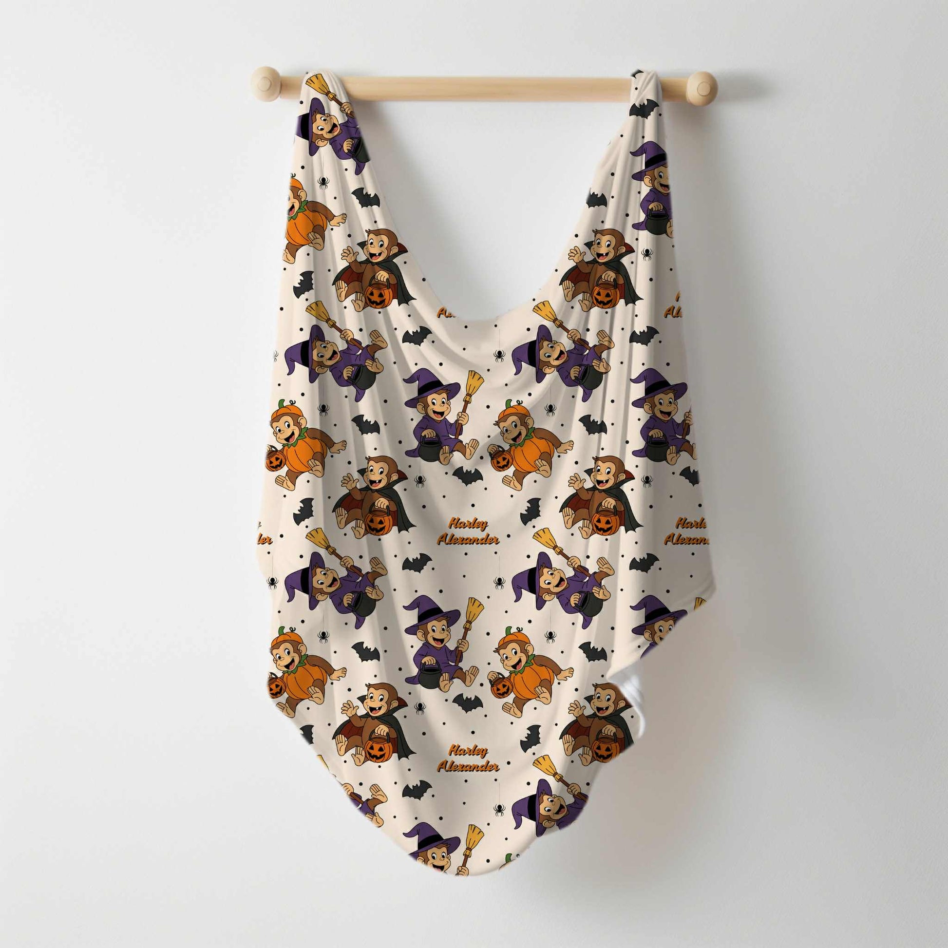 Monkey-Ween Halloween Personalized Name Swaddle Blanket