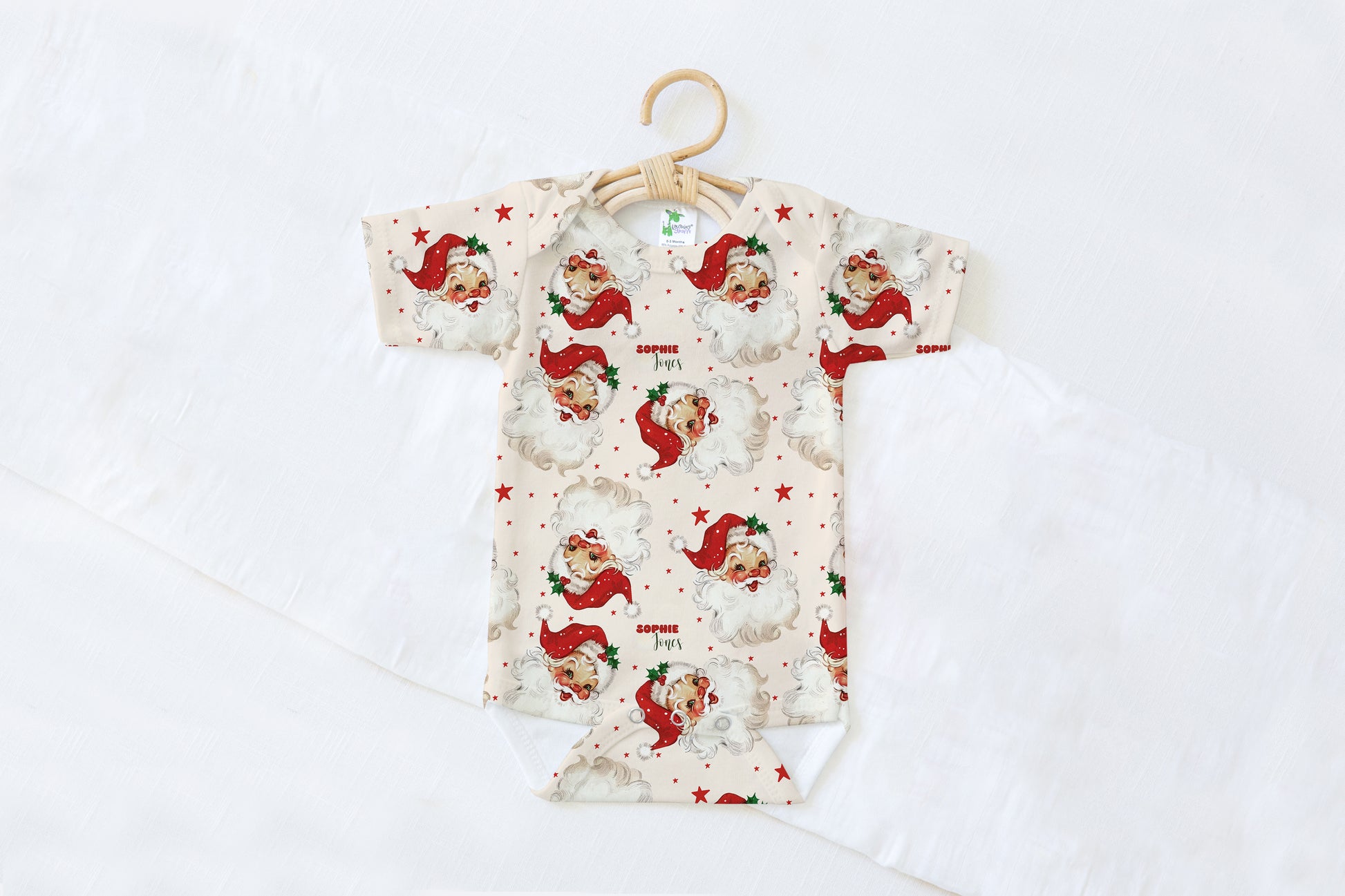 Old Saint Nick Christmas Personalized Name Baby Bodysuit