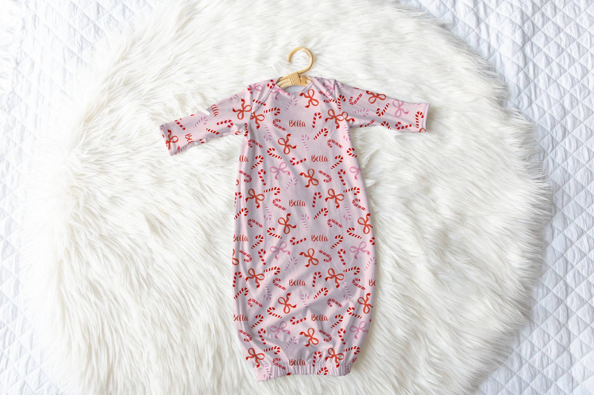 Peppermint Bows Christmas Personalized Name Infant Gown
