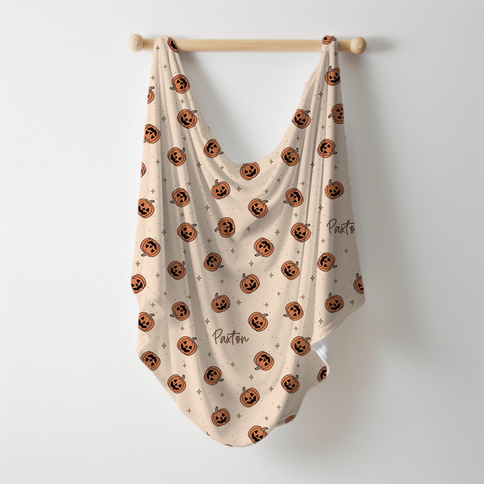 Pumpkin Halloween Personalized Name Swaddle Blanket