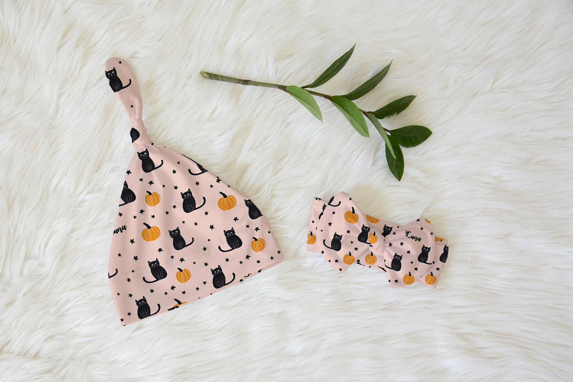 Purr-anormal Activity Halloween Personalized Knotted Newborn Hat & Bow Headband