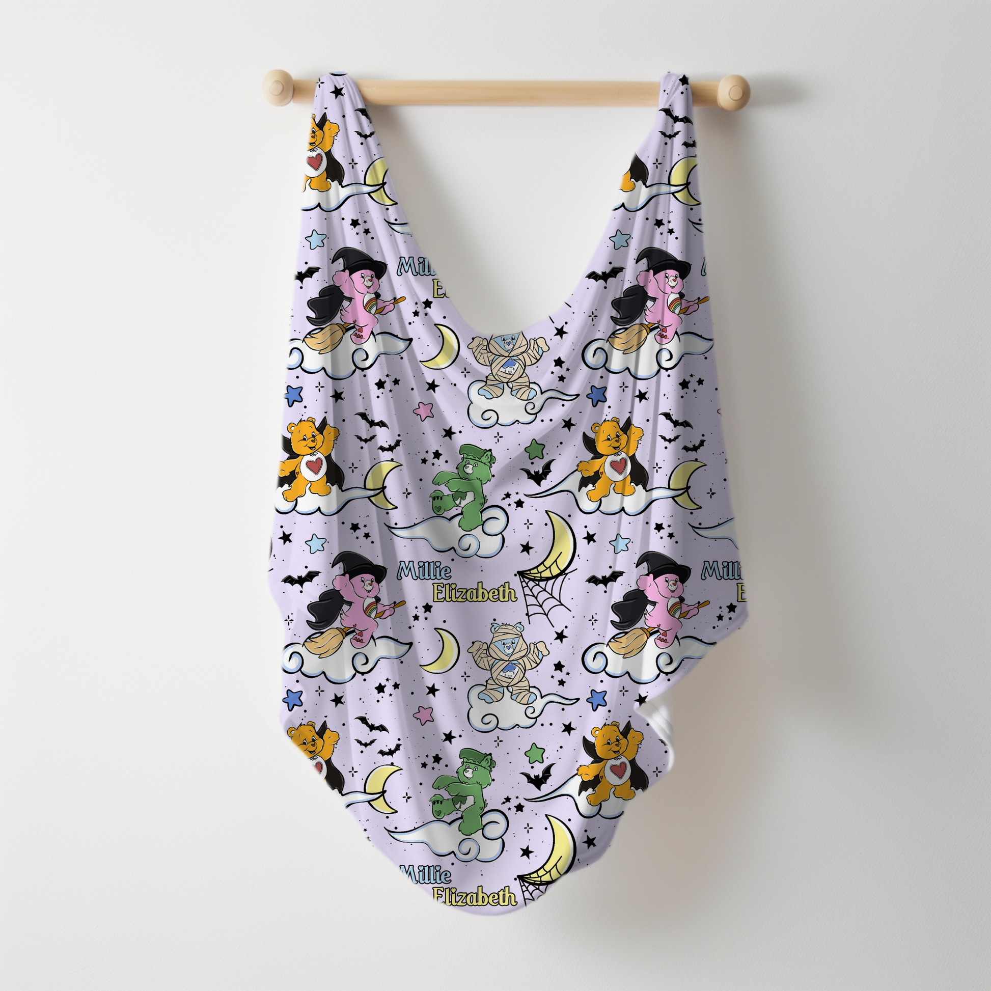 Scare Bears Halloween Personalized Name Swaddle Blanket