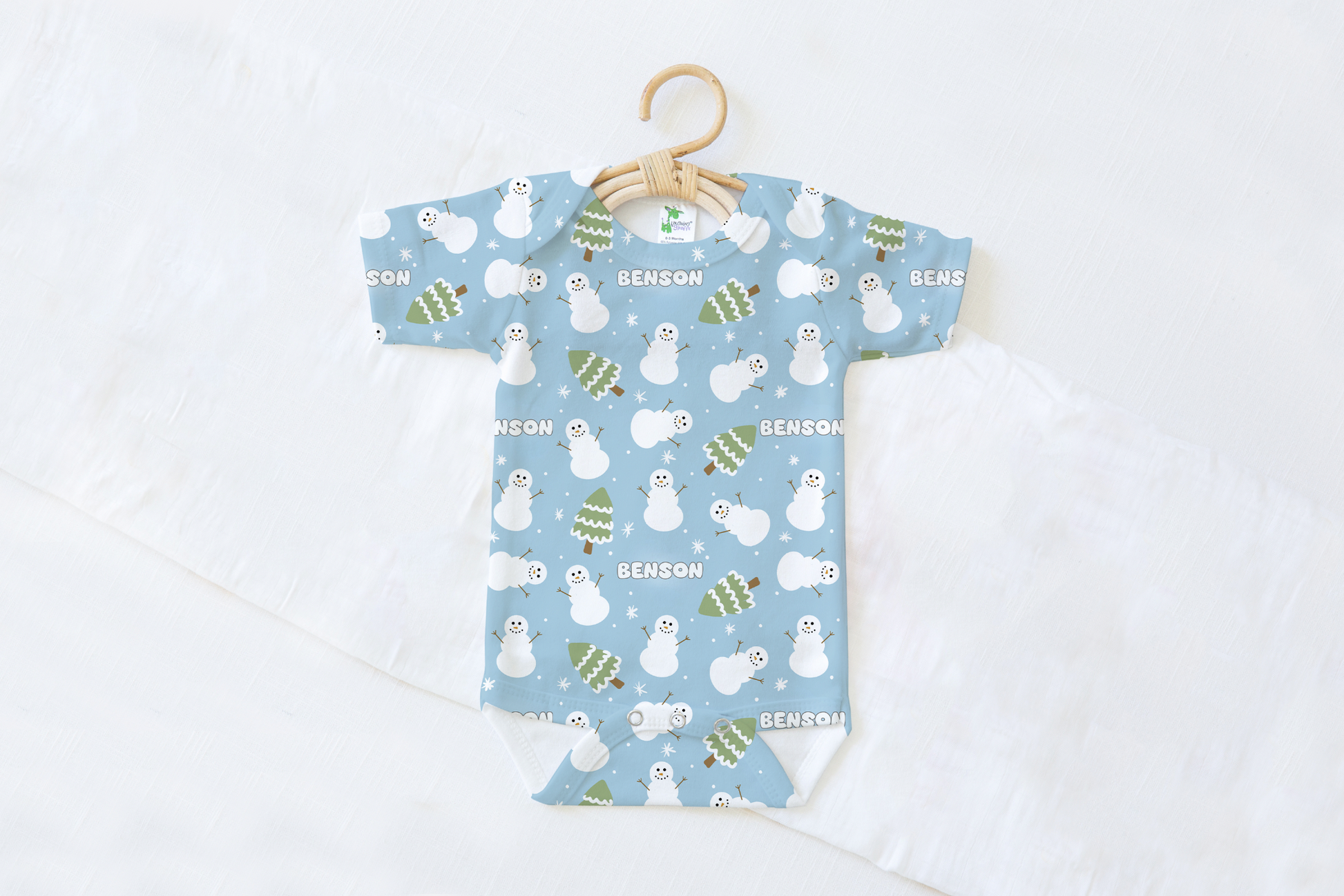 Snowman Wonderland Christmas Personalized Name Baby Bodysuit