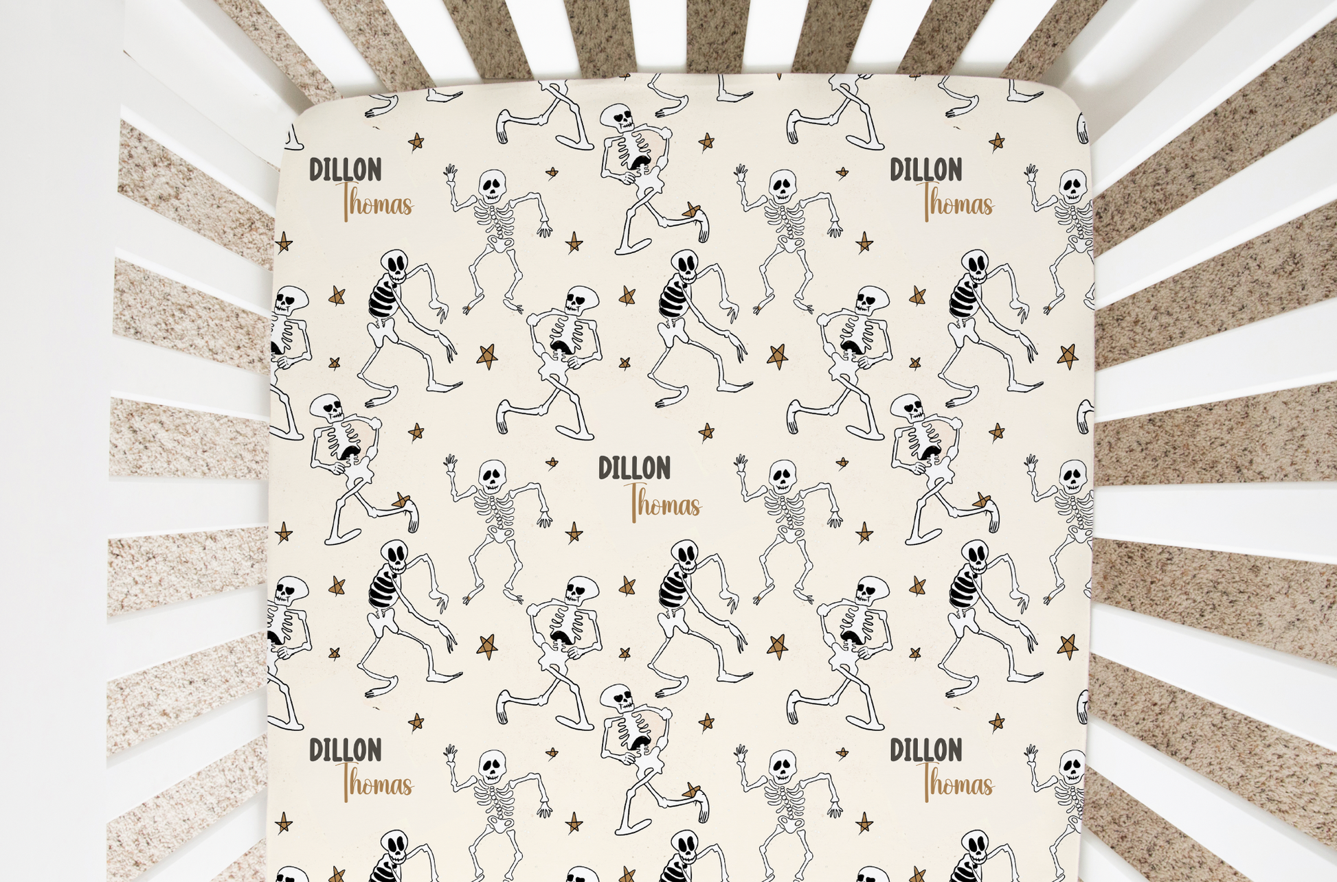 Spooky Scary Skeletons Halloween Personalized Crib Sheet