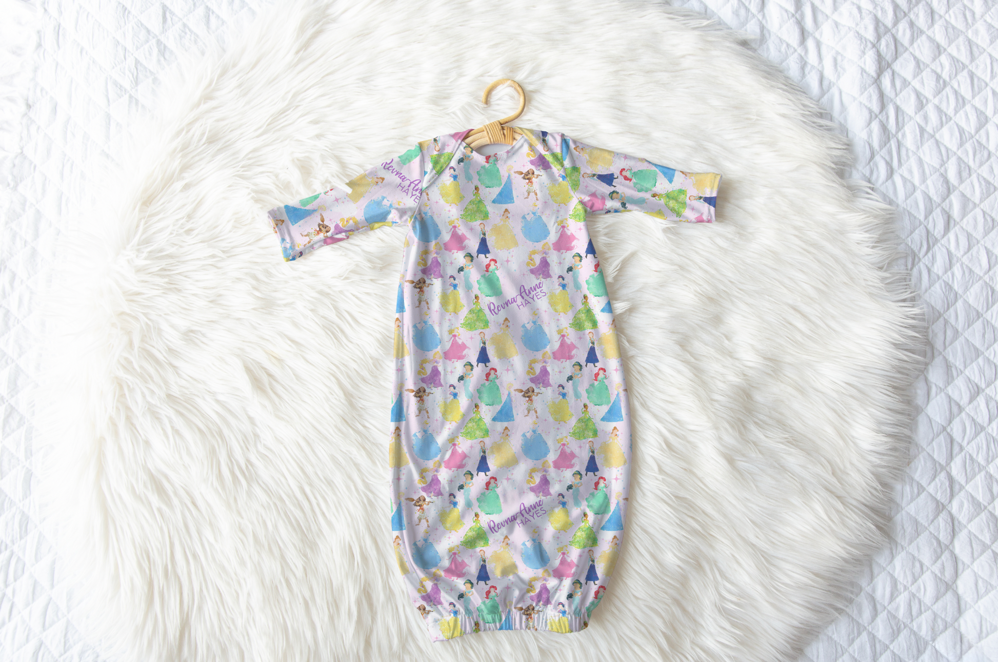 Watercolor Princess Personalized Name Infant Gown